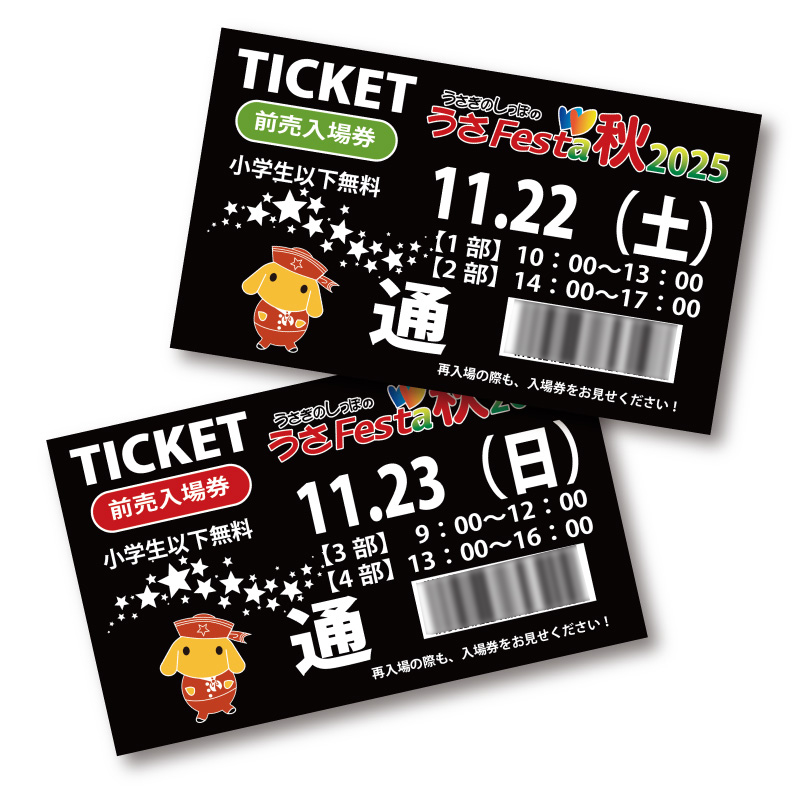 今回のうさフェスタでは、午前と午後の部を両方お楽しみいただける『前売り通し券(2,000円)を発売します。