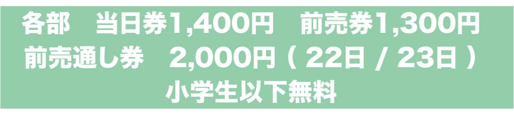 ただし、CNプレイガイド(ファミリーマート、セブンイレブン)の前売通し券(14日 / 15日)は各日100枚限定です。お早めの購入をおすすめいたします!