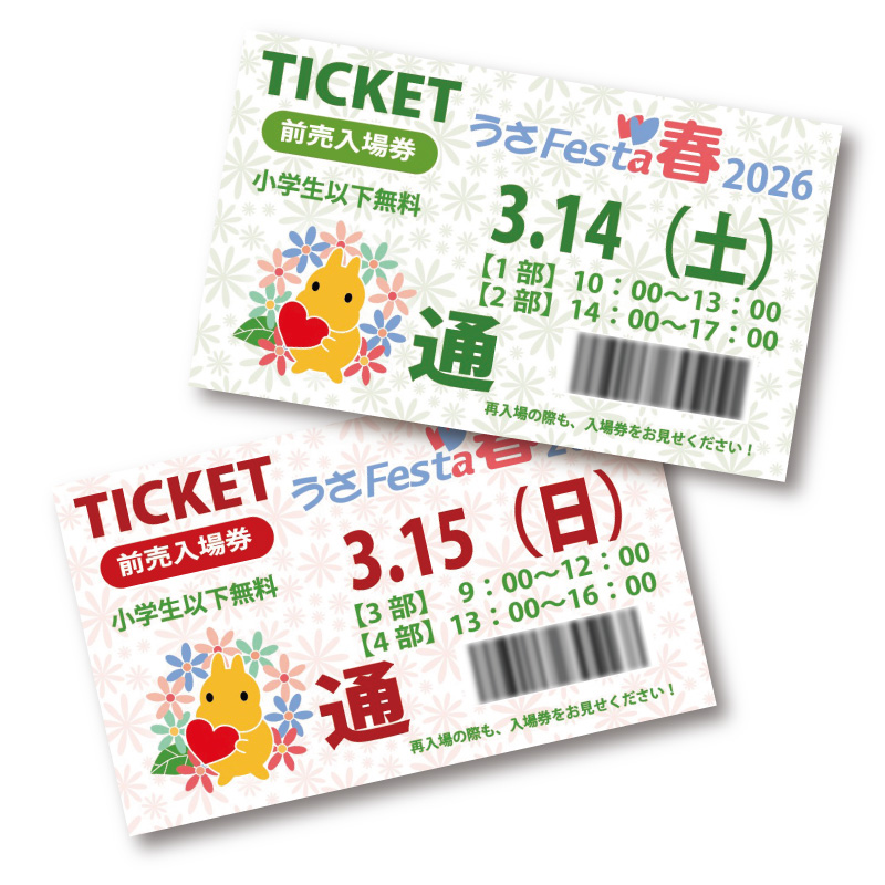 今回のうさフェスタでは、午前と午後の部を両方お楽しみいただける『前売り通し券(2,000円)を発売します。