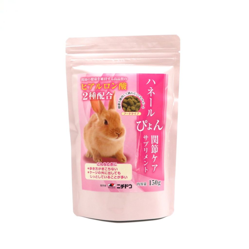 関節の動きをサポートする”ナノ化ヒアルロン酸”と関節の健康をサポートする”抗酸化成分”を配合したウサギさんのための関節ケアサプリメントです。