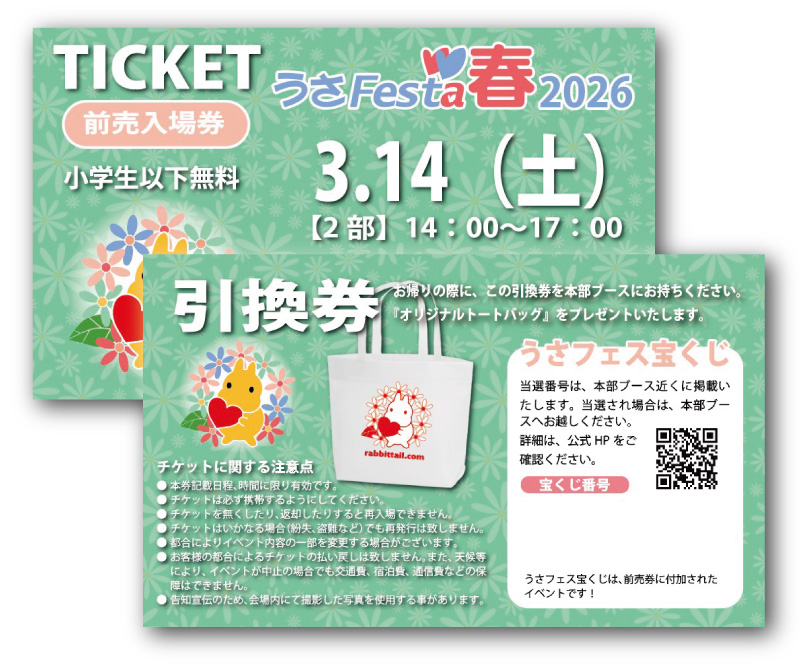お買い物を楽しみながら、うさちゃんについてもっと考えていただきたいという想いを込めて、有料チケットをお持ちの先着4,000名様に「オリジナルトートバッグ」をプレゼントいたします。